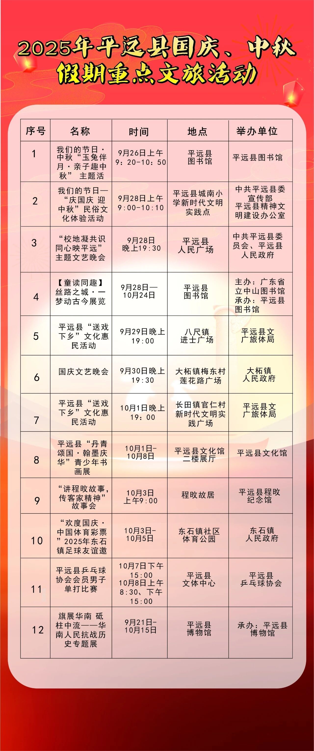 记者从平远县获悉亿海配资,国庆、中秋长假期间,当地将举办系列精彩文旅体活动,具体如下: