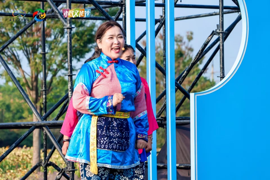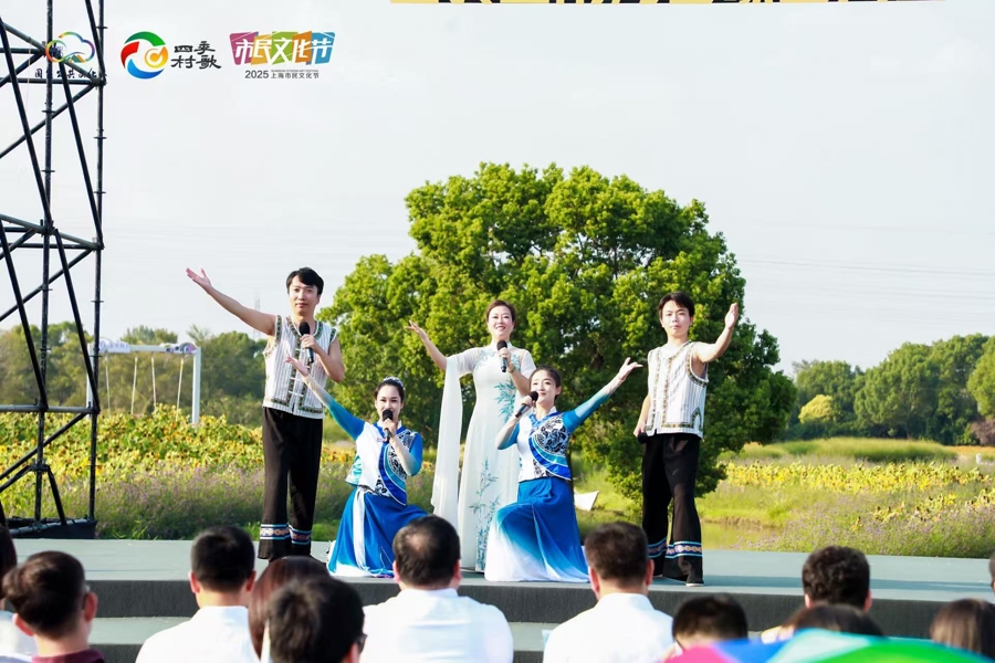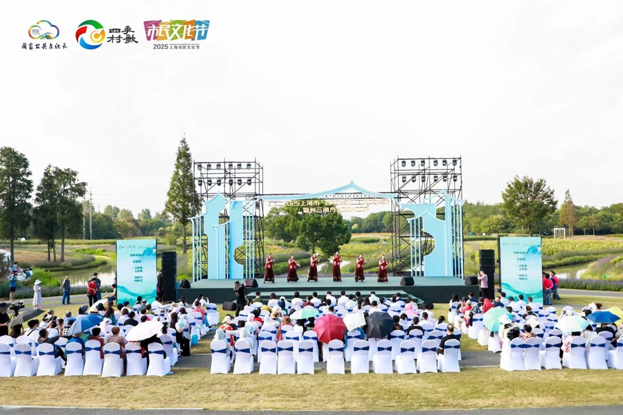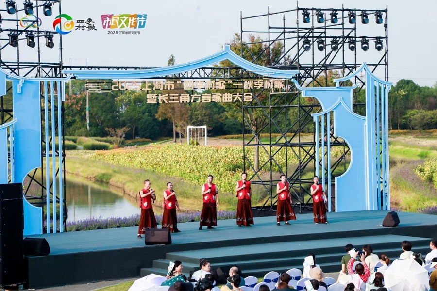 以花开海上生态园的自然景观为舞台,在绿树、向日葵的映衬下,10月15日下午,“繁荣乡村文化新生活 唱响乡村振兴主旋律”2025上海市“四季村歌”——秋季村歌展演活动暨长三角方言歌曲大会在金山区朱泾镇举行。来自长三角区域的十余支优秀代表队齐聚一堂,用质朴、嘹亮的歌声,为观众呈现了一场充满乡土气息、饱含时代精神的文化盛宴,展现了长三角一体化背景下乡村文化振兴的丰硕成果。