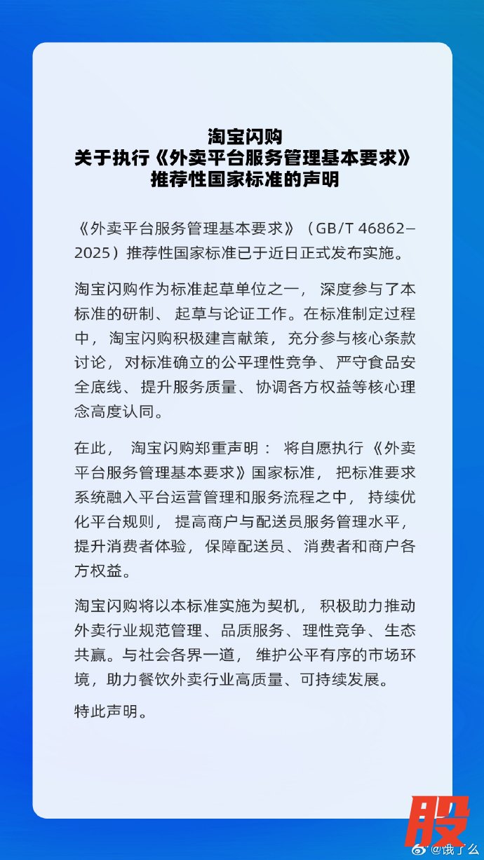 淘宝闪购回应《外卖平台服务管理基本要求》淘宝闪购回应《外卖平台服务管理基本要求》
